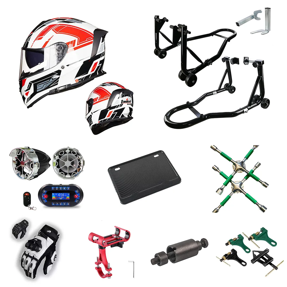 • أدوات السلامة الخاصة بالدراجة النارية مثل خوذتك.